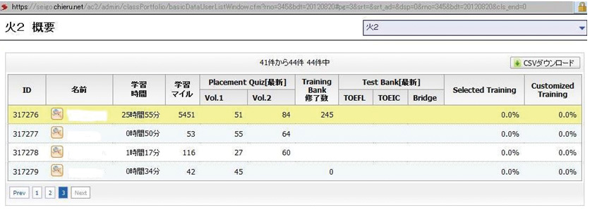 また、『スーパー英語 Academic Express 2』は、「受講者一覧」機能により、学生ごとの学習状況をリストで参照でき、リストはCSVファイルに出力することも可能だ。