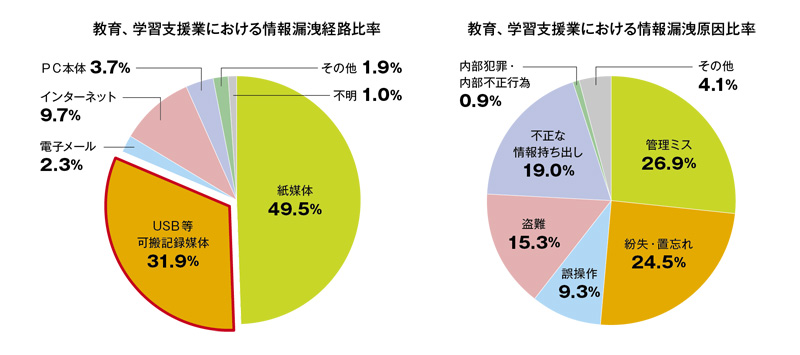 日中は授業や児童・生徒の指導にあたる教員にとって、パソコンでの事務処理や教材作成などの作業は自宅に持ち帰って行うことが多い。現在、学校のパソコンからのデータの持ち出しについては、教育委員会から支給された専用のUSBでしか持ち出せず、持ち出したデータは外部のパソコンには保存できない、という制限がかけられている。CDやCD-R、一般のUSBなどにはデータが書き込めないようデバイス制御がされているのだ。