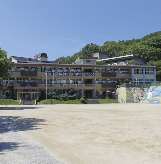 全校生徒約280 名。瀬戸内海に面した風光明媚な笠岡市の中心部にある。全教室に実物投影機・プロジェクタ・マグネットスクリーンを常設し、今年6月、50 型の大型テレビも導入。