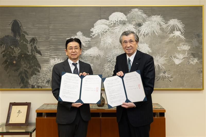 2026年4月9日に鎌倉女子大学 大船キャンパス にて行われた締結式には、学校法人鎌倉女子大学の福井 一光 理事長と、チエル株式会社の川居 睦 代表取締役らが出席し、協定書に調印を行いました。